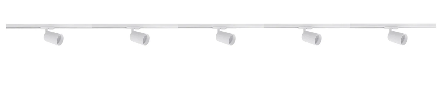 Komplett 2 meter spotskinne med 5 spotter samt endetilkobling i hvit farge. Du behøver 5 stk lyspærer med GU10-sokkel til spotskinnen. Velg gjerne noen dimbare lyspærer og koble skinnen til en dimmebryter f.eks. på veggen, slik at du kan justere lysstyrken ved behov.