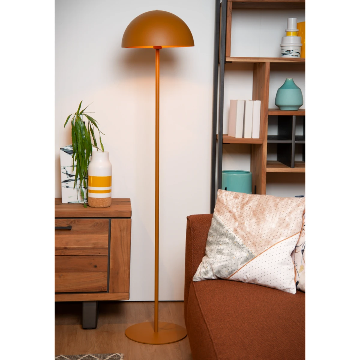 Lekker og tidløs gulvlampe i orkerfarget metall med gullfarge på innsiden av skjermen.