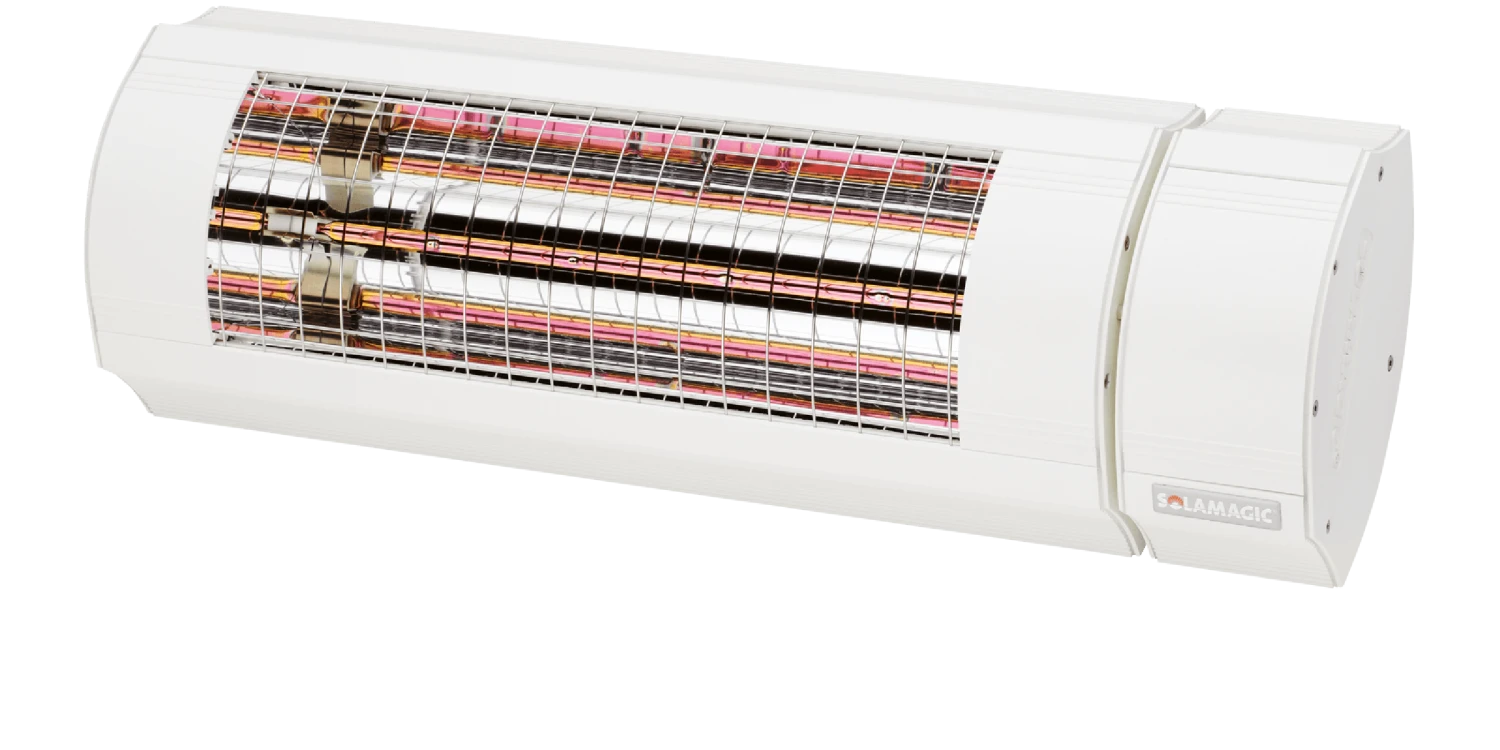 Den unike Solamagic ECO+ PRO 2000 ARC-løsningen, med trinnløs varmeregulering via fjernkontroll fra av til full effekt.