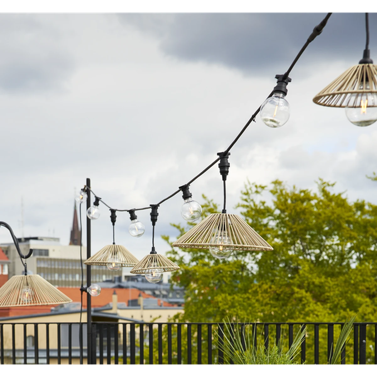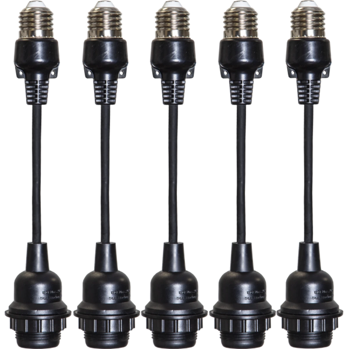 Lampeholderne kan benyttes på lysslyngene fra System Expo/Connecta. Skrues inn i sokkelen for å få lyspærene til å hente lenger ned. Det er også mulig å feste Vide- og Connecta-lampeskjermer på nedhengene.