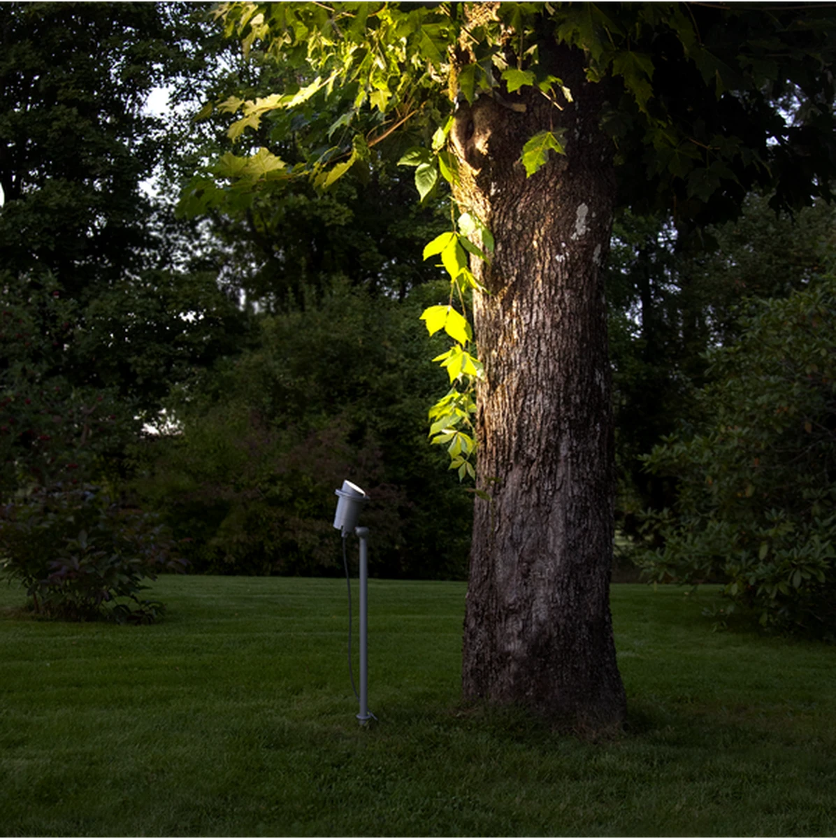 Hagebelysning med GU10 lamper. Mørkegrå aluminiumsspot for utendørs bruk, ca 65 cm høy. Lys opp hagen din med denne elegante spotlampen. Startkabel er inkludert. Varier lyset med forskjellige lyskilder, ikke inkludert.