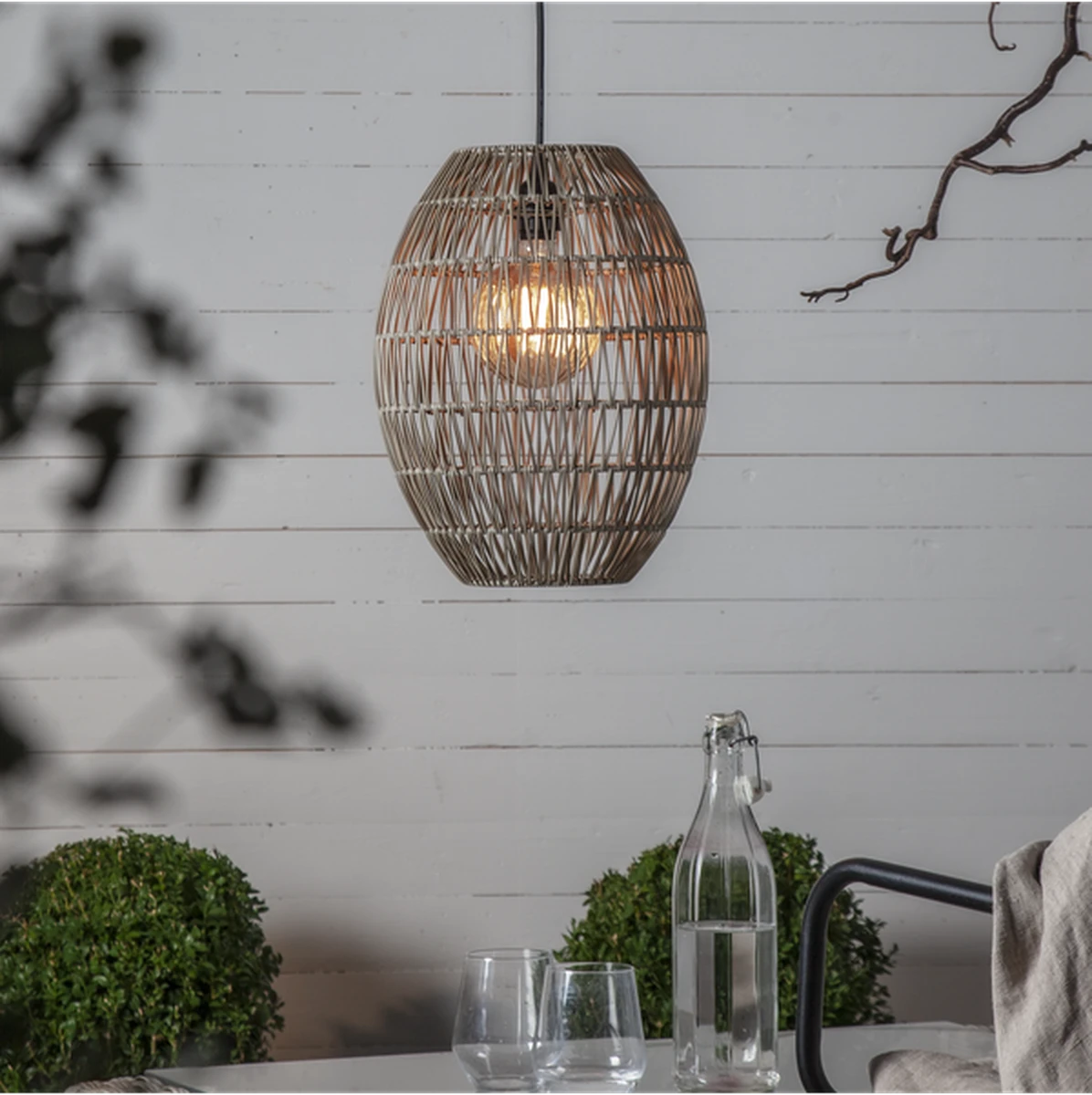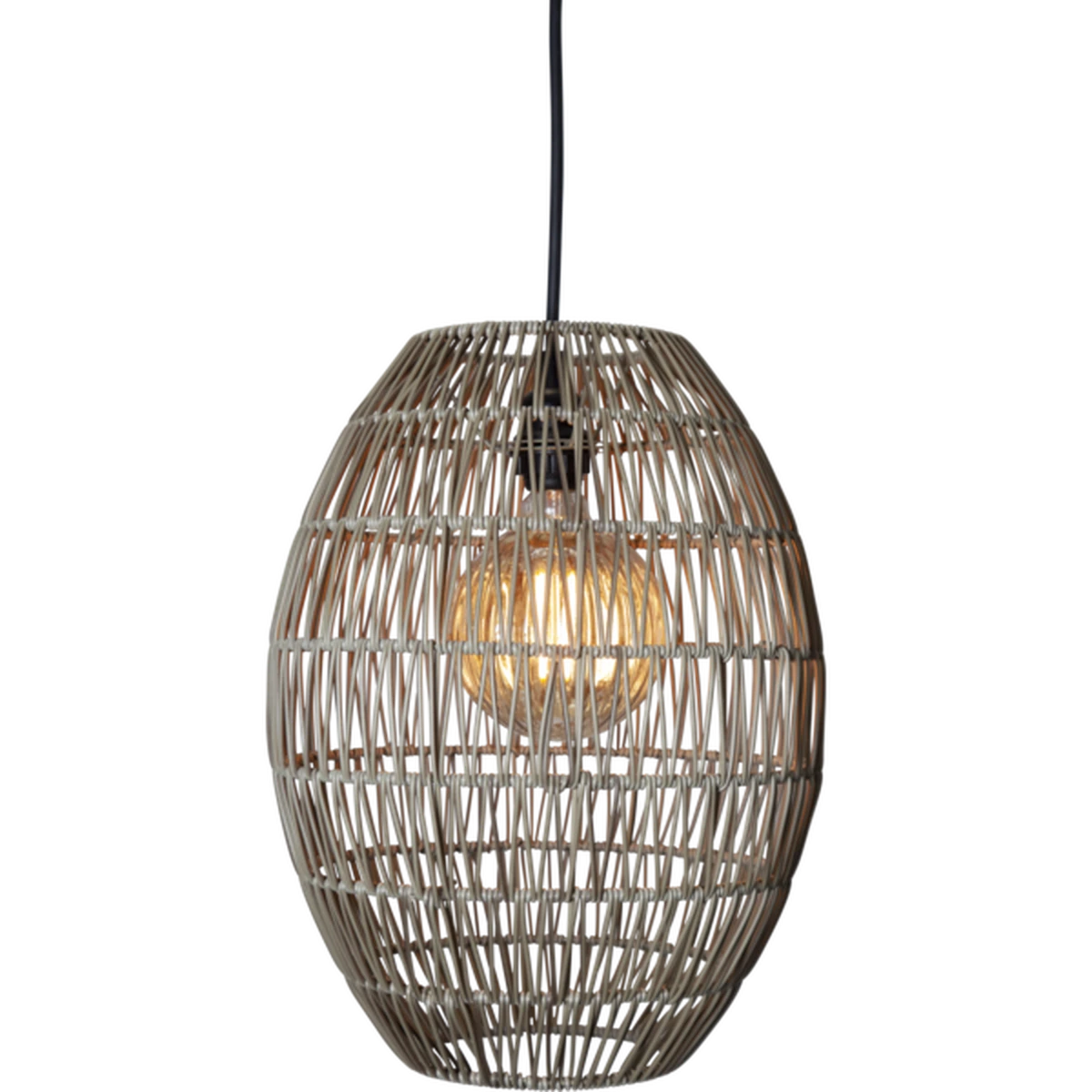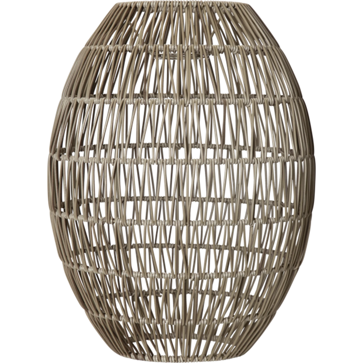 Gråbeige 40cm høy lampeskjerm i kunstrotting for utendørs bruk. Miks og match med våre utendørs oppheng og lyskilder. Egnet for oppheng med E27 base og lyskilder som er mindre enn 14 cm i diameter.