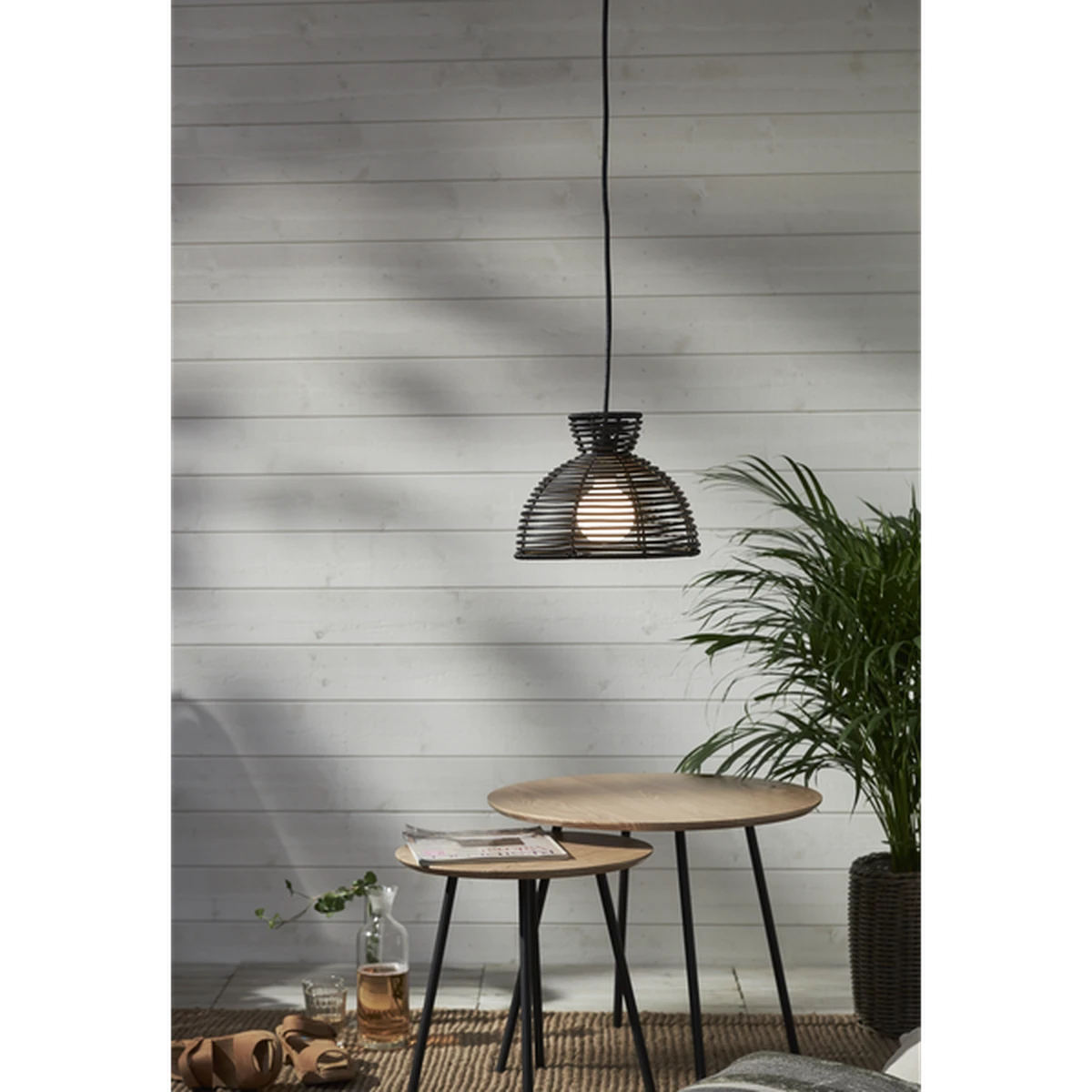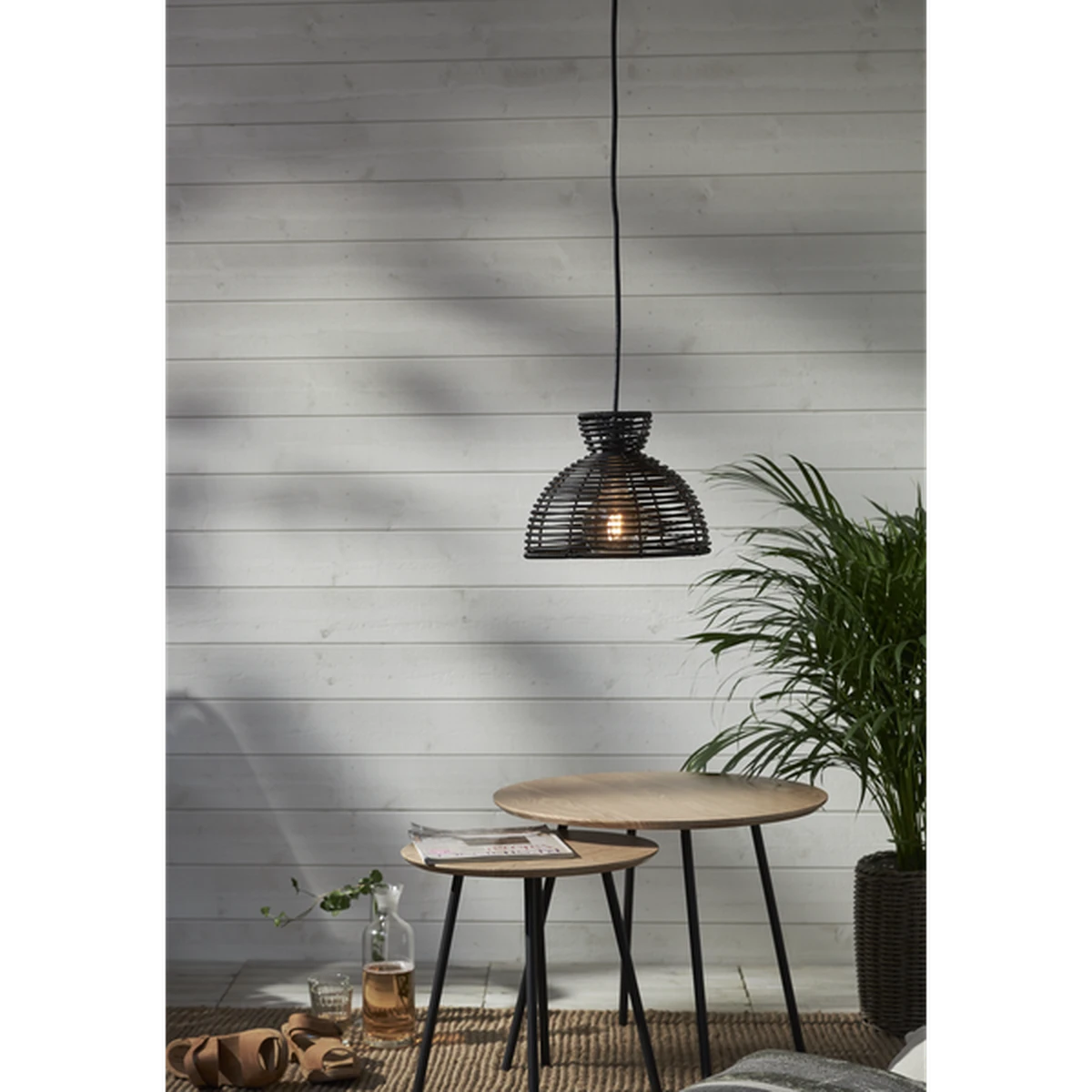 Sort lampeskjerm i kunstrotting for utendørs bruk
