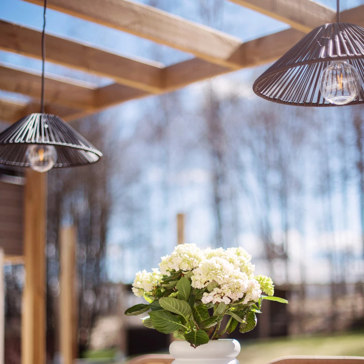 Kan også henges enkeltvis i ledning, som pendel inne eller ute.