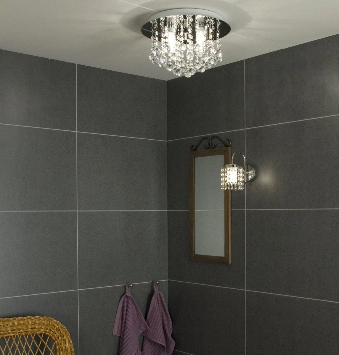 Nydelig plafond av metall med prismer av akryl. Lampen kan brukes i husets fleste rom og er også egnet til bruk på badet.