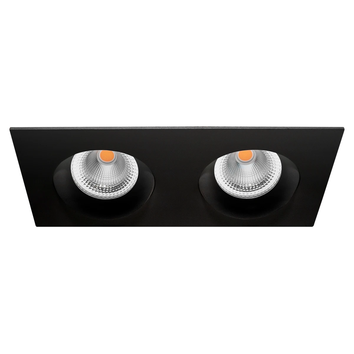 Tigrus 360° Square double downlight CRI>95 kan monteres rett i isolasjon.. Det 360° roterbare lyshodet gir mulighet til å vippe lysstrålene opp til 25 grader i alle retninger. Leveres i 2700K og Dim2Warm. Downlighten er enkel å installere, uten behov for skrutrekker. Utsparing 175x76mm