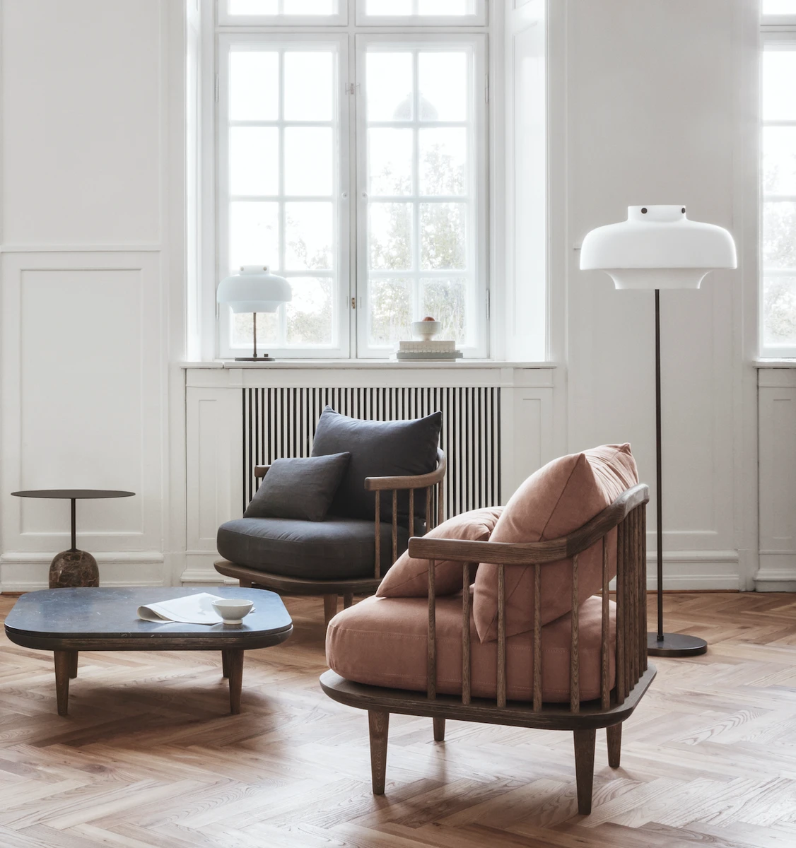 Copenhagen gulvlampe er en vakker gulvlampe som er lett å plassere i et rom, med sin opale glasskjerm vil den gi godt med lys uten å blende. Ideen bak lampen var å bruke konstraster i utformingen, maritim og industriell, klassisk men moderne stil. Lampen skulle være i en lett industriell stil, men med et snev av eleganse. Noe de har klart bra.