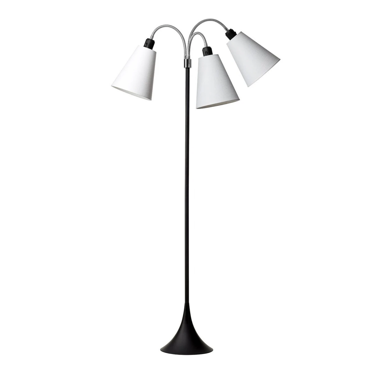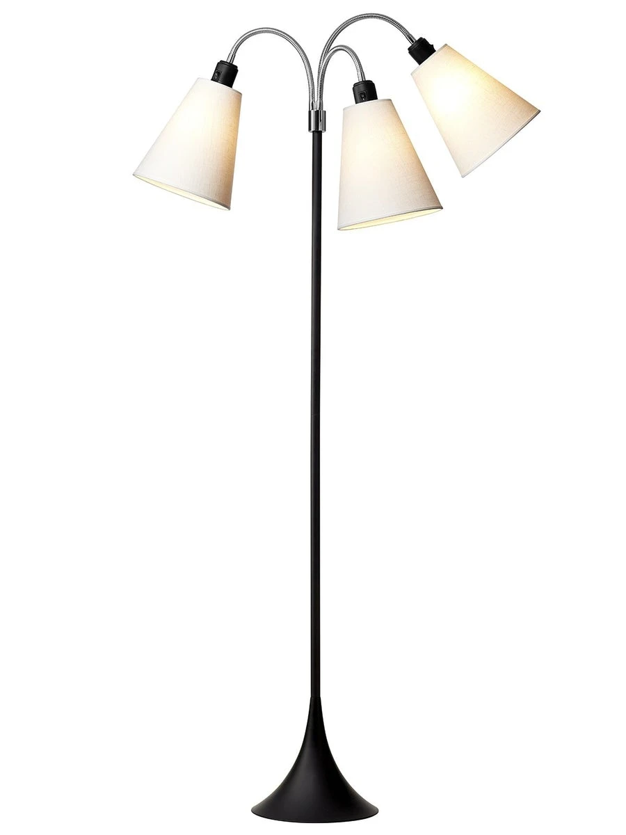 Klassisk gulvlampe med 3 skjermer og er fleksibel slik at du kan justere lampehodene.