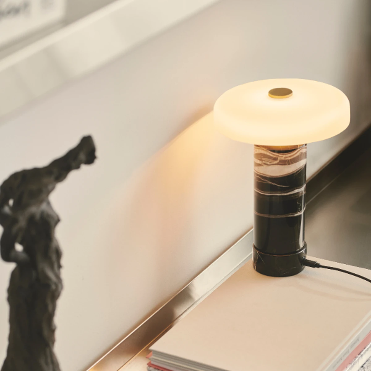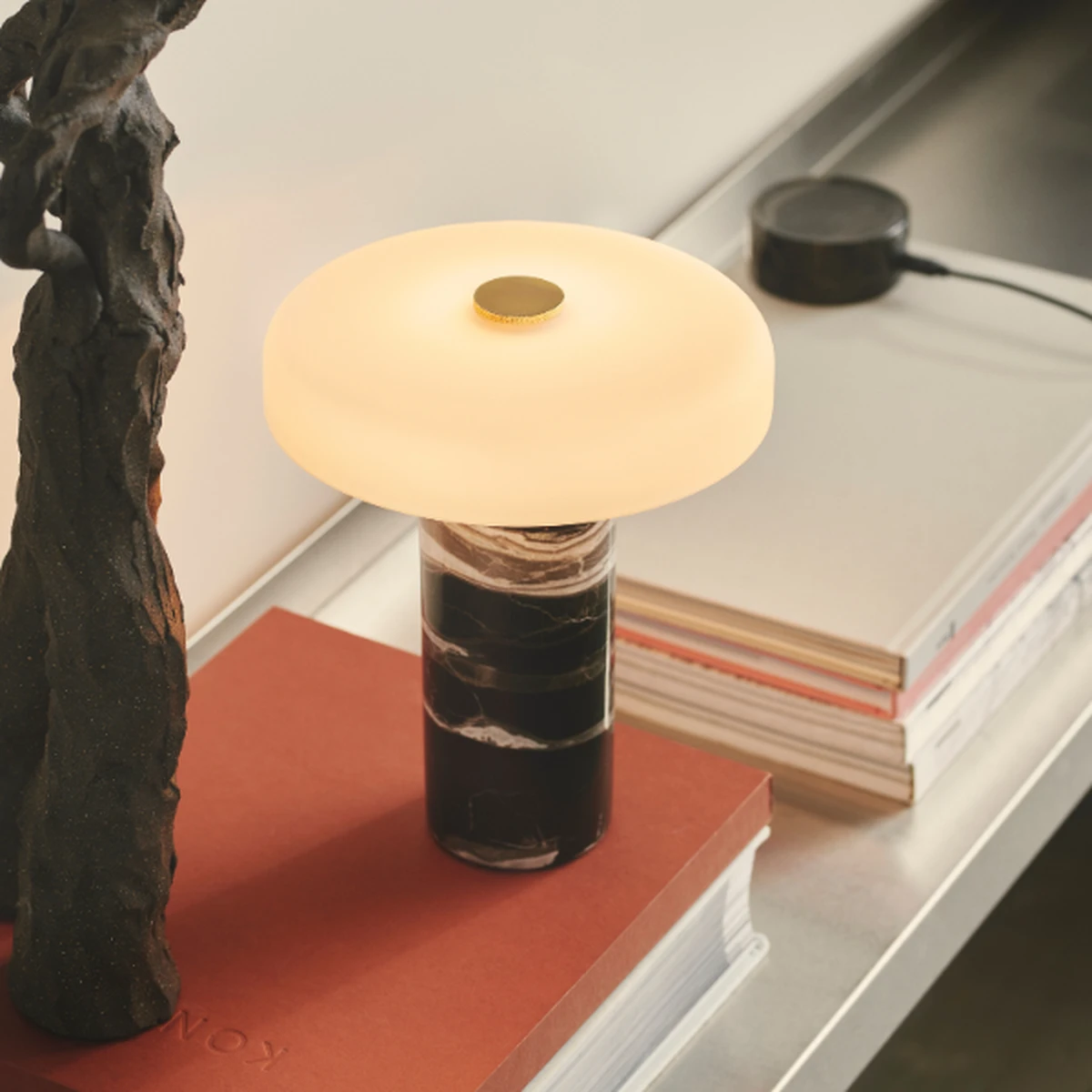 Rene linjer og enkel design i vakre materialer beskriver den nye oppladbare bordlampen TRIP fra Design by us. De har tenkt på hver eneste detalj i den bærbare, oppladbare LED-lampen. Den skulpturelle designene med polert marmor og munnblåst glass gir TRIP et spesielt ekslusivt utseende. Det er en berøringsdimmer på toppen, som kan stilles inn på 3 lysstyrkenivåer. Lampen er fullt oppladbar. En full lading tar 9 timer. Den har innebygd batteri og leveres med trådløs lader og usb kabel.