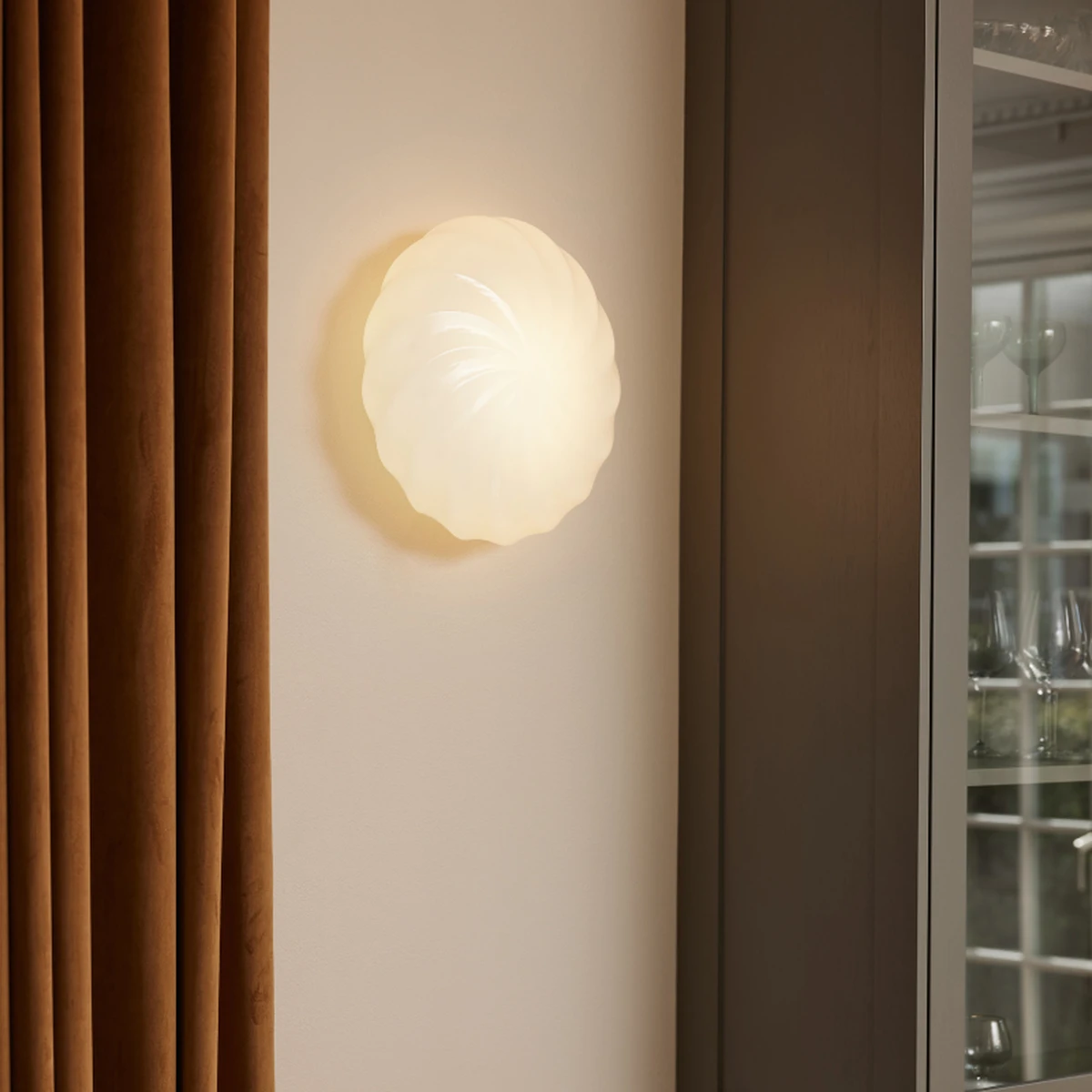 Twist lampen er like fin i tak som på vegg. Lampens lyseffekt overrasker grunnet de vridde linjene i glasset