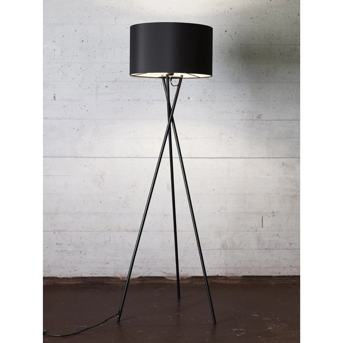 Stilren gulvlampe med skjerm i tekstil. Bryter er montert på selve ledningen.
