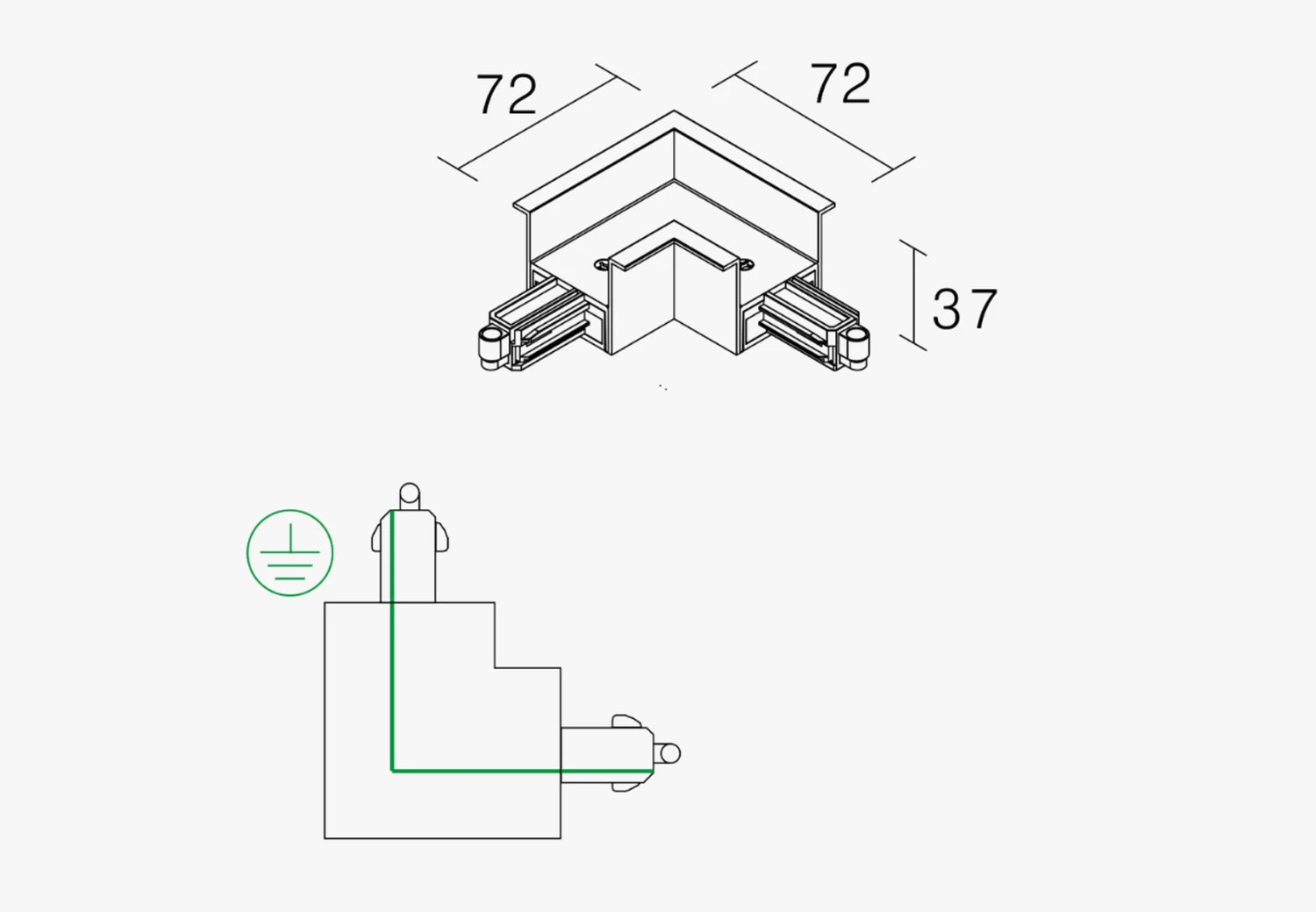 Vinkelskjøt med jordingskobling på utsiden av hjørnet. (O, outside)