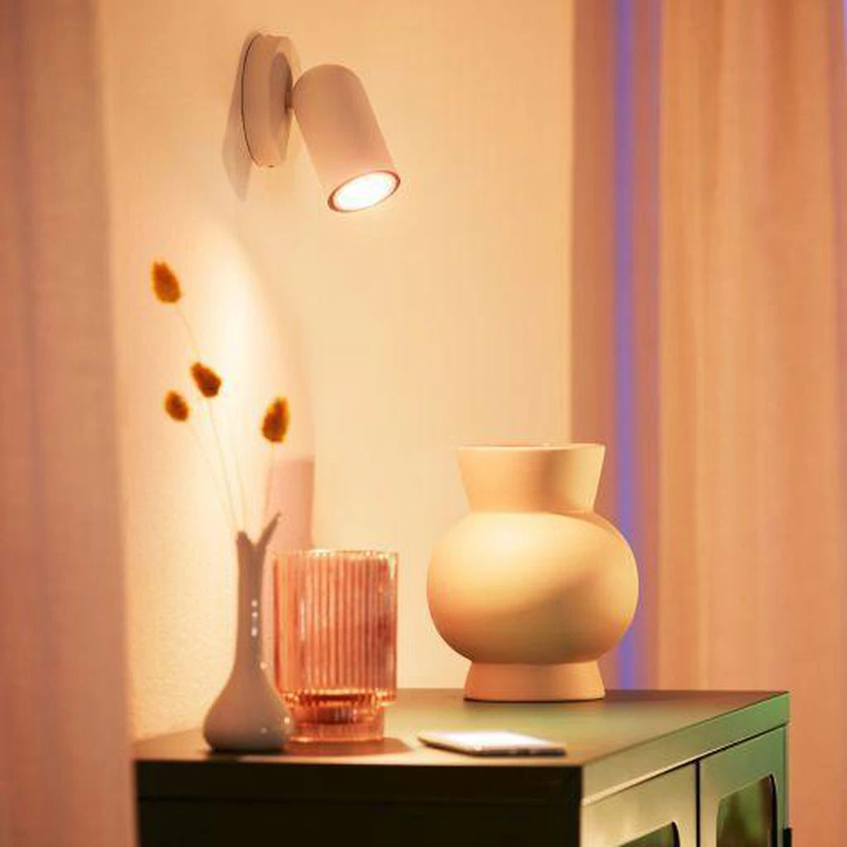 Skap en koselig atmosfære med varmhvitt lys. Et smartlys som enkelt tilpasser seg dine hverdagslige aktiviteter
